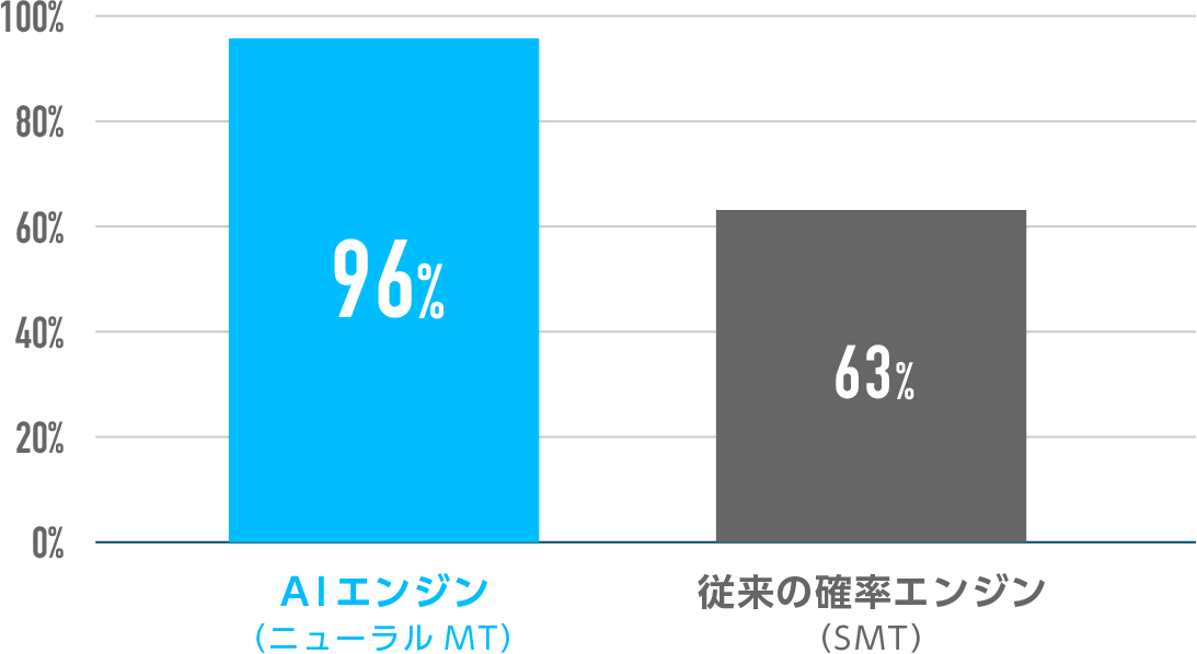 AIエンジンの翻訳精度は、専門家による翻訳精度にかなり近いという結果となりました。